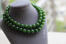 宝珠原创手作 保真菠菜绿7.5mm天然俄料和田碧玉 圆珠纯银扣 项链