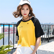 2017夏季韩国风个性袖子字母上衣服织带拼接休闲学生短袖T恤女潮