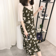 时尚裙子2017夏新款韩版中长款收腰显瘦网纱a字长裙修身连衣裙女