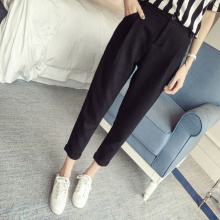 春秋新款学生休闲裤卷边哈伦裤九分裤女装学生小脚宽松显廋西装裤