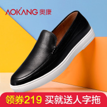 奥康男鞋春季 男士休闲鞋懒人一脚蹬鞋子套脚乐福鞋男真皮潮流