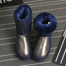 CE亮片雪地靴5825套脚中筒靴牛皮超柔毛女靴子钢标平底靴 白色