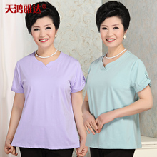 中老年短袖女夏纯棉t恤薄款宽松大码老人打底衫妈妈装半袖上衣