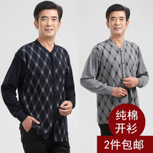 中老年开襟秋衣男士开身纯棉单件上衣保暖内衣开衫老年人棉毛衫男