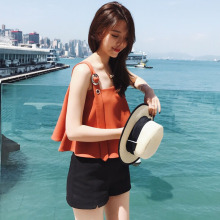 【GG】雪纺背心女夏外穿2017纯色短款无袖宽松吊带露背打底衫上衣