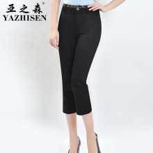 新款八分裤中年女夏薄显瘦高腰直筒裤大码弹力七分裤休闲妈妈西裤
