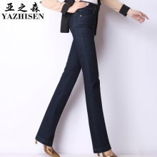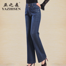春秋款牛仔裤女裤中老年高腰大码阔腿裤妈妈裤修身显瘦弹力长裤女