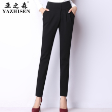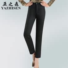 新款女装高腰弹力休闲裤中年女韩版小直筒纯棉女裤显瘦长裤有大码