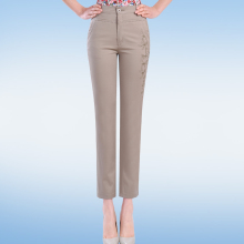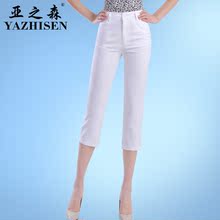 中年女裤夏薄款九分裤女弹力高腰休闲裤修身显瘦松紧腰小脚铅笔裤