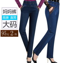 中老年牛仔裤女薄款高腰直筒裤松紧腰加肥加大码弹力妈妈裤有厚款