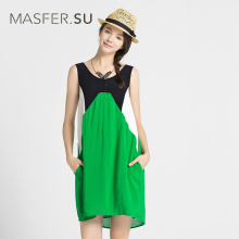 Masfer.SU玛丝菲尔素春季新款撞色小伞摆时尚连衣裙