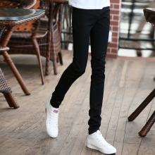 2017夏季新款潮青少年纯黑色牛仔裤男小脚修身型薄款韩版紧身裤子