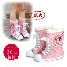 时尚卡通公主儿童雨鞋女童中筒防滑水鞋宝宝轻便系带胶鞋套鞋包邮