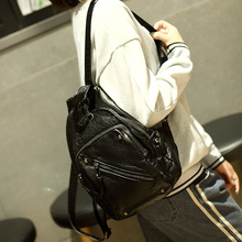 2016韩版新款双肩包时尚水洗皮女士背包软皮女包潮流街头休闲胸包