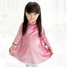 春秋款儿童旗袍唐装 女童九分袖连衣裙 金丝绒纯色中国风复古裙子