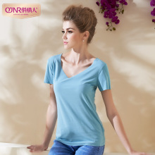 俏情人新品短袖T恤女夏季莫代尔汗衫随心裁纯色V领纯色打底衫3270