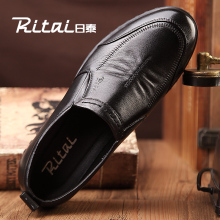 日泰男鞋春季中老年皮鞋男鞋圆头 父亲套脚休闲皮鞋软底爸爸鞋子