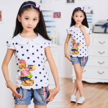 女童短袖t恤2017新款夏装 翻领卡通小熊圆点娃娃领短袖 小童t恤