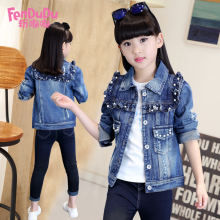 女童牛仔外套上衣韩版中大童女童装2017春款水洗牛仔单排扣美女图