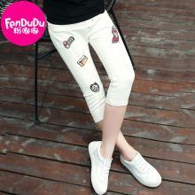 女童白色牛仔裤中裤马裤七分裤中大童修身打底裤儿童裤子弹力裤