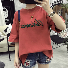 2017夏装新款女装韩版宽松大码学生贴皮绣花t恤女短袖破洞打底衫