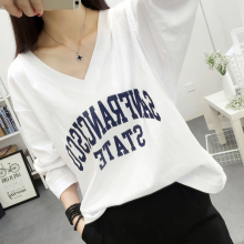 秋装新款V领打底衫女修身大码体恤女显瘦百搭纯色t恤女长袖上衣服