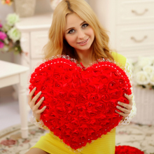 婚庆结婚抱枕毛绒玩具心形玫瑰花抱枕爱心靠垫 婚庆礼品生日礼物