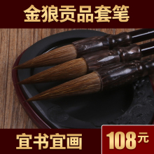 湖州善琏湖笔 金狼贡品套笔(大中小)狼毫毛笔 书法国画专用
