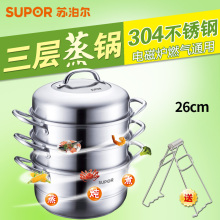 苏泊尔304不锈钢大蒸锅 三层复底SZ26B4电磁炉燃气明火26cm