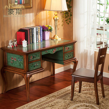 豪斯家具 欧美古典棕色 彩绘写字桌电脑桌 秘书柜 高脚 新款特价