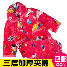 秋冬儿童珊瑚绒睡衣家居服棉袄男女童睡衣小孩三层加厚夹棉包邮