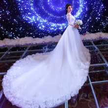 婚纱礼服新娘结婚2017新款一字肩齐地韩式显瘦大码孕妇婚纱长拖尾