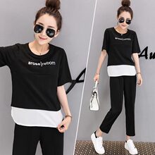 运动套装女加肥加大200斤胖MM夏装宽松大码九分裤 夏天休闲两件套