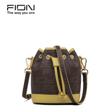 FION/菲安妮新款包包女抽带印花单肩包女包时尚水桶包迷你小包女