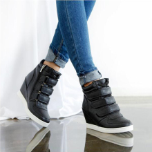 韩国代购内增高女鞋2017春拉链魔术贴坡跟运动鞋高帮高跟休闲单鞋