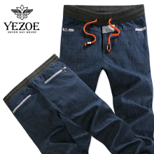 英佐品牌 夏男士牛仔裤男韩版修身直筒长裤 小脚蓝男装弹力男裤薄
