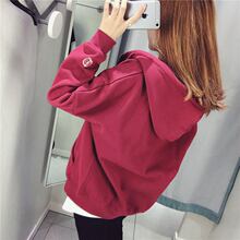 韩国东大门薄款短外套女休闲宽松刺绣纯棉连帽卫衣拉链开衫外套潮