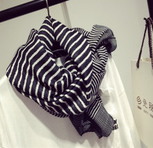 春秋季黑白条纹棉麻围巾百搭大披肩 男女情侣韩版保暖围脖