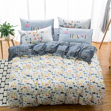 红牡丹北欧简约纯棉四件套全棉1.5m/1.8米床上用品卡通被套床单