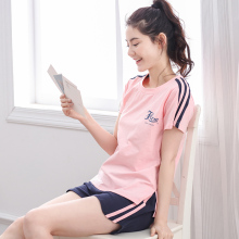 运动纯棉睡衣女夏季短袖短裤套装夏天休闲甜美可爱韩版女士家居服