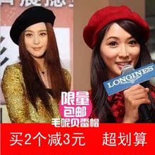 韩国秋冬天贝雷帽复古英伦画家帽蓓蕾帽纯羊毛线帽子女韩版潮冬季