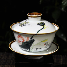 凝香阁三才盖碗茶具配件手绘盖碗青花盖碗泡茶器厂家直销