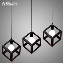 合悦复古工业餐厅灯创意铁艺咖啡厅吧台三头吊灯北欧正方形单头灯