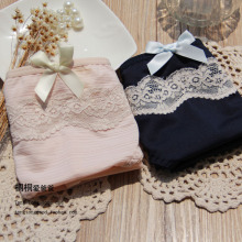 外贸出口日本纯棉内裤女 可爱中腰全棉蕾丝边无痕包臀大码三角裤