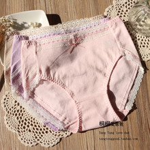 外贸简约 全棉内裤女日系中腰无痕蕾丝边 甜美可爱纯棉女士三角裤