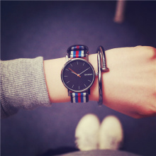 条纹帆布表带男超薄简约复古布带韩版简约潮男女学生情侣一对手表