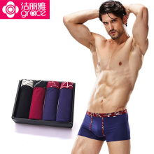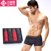 洁丽雅男士内裤男平角裤头莫代尔中腰四角短裤内裤4条装