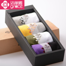 洁丽雅袜子女棉春夏季短袜女袜礼盒袜中筒女士棉袜5双礼盒装