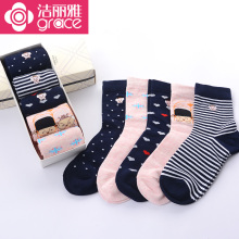 【泰迪珍藏】洁丽雅袜子棉袜女秋冬情侣袜可爱条纹个性刺绣5双装