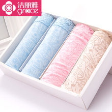 洁丽雅女士无痕内裤女性感蕾丝边一片式中腰内裤薄款4条装